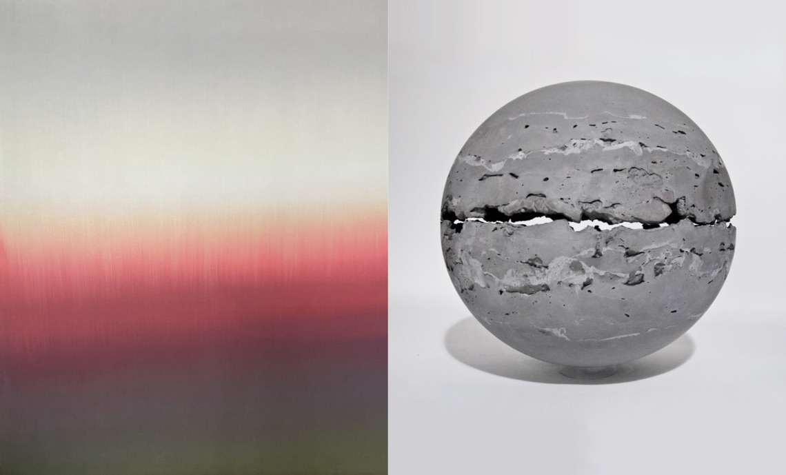 Séparées par deux générations et des pratiques différentes, sculpture et peinture, elles partagent quelque chose de rudimentaire, le peu de matériaux ; de pulsatile, des foisons de variations ; et par-dessus tout une sorte de latence de la perception. Les sculptures de béton de Claude de Soria sont dures et fragiles, leurs gris varient selon la lumière réfléchie à leur surface, des ombres mordent ouvertures ou bordures ; les peintures de Claire Chesnier sont des sédimentations évanescentes et concentrées de pigments dilués sur du papier de coton, des brouillards de couleurs, des brumes ténébreuses, des espaces rougeoyants métamorphosés en sensations de cosmos, d’atmosphères, de paysages.
