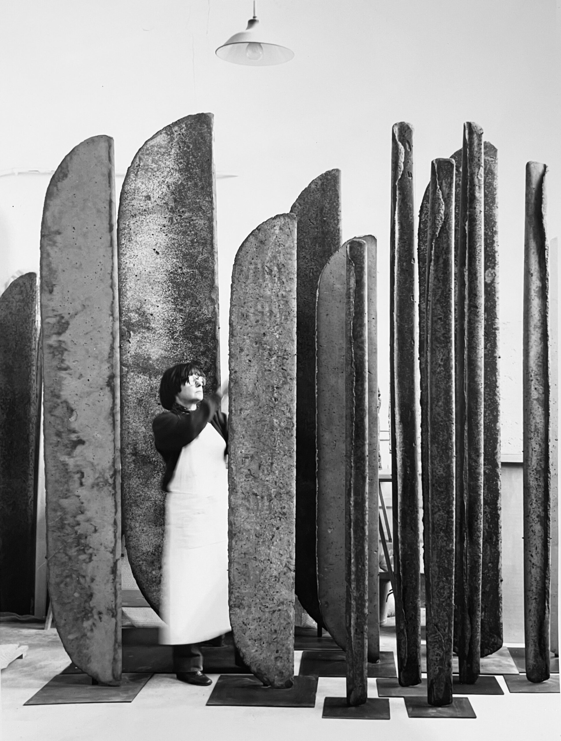 090324, 2024, 160 x 128 cm, encre sur papier. photo. © Fabrice Seixas – courtesy Ceysson & Bénétière, ©Claire Chesnier et Adagp 2025 Boule CDS-1992, 1977, D 40 cm, ciment. photo. ©Malala Andrialavidrazana – Atelier Claude de Soria 2018